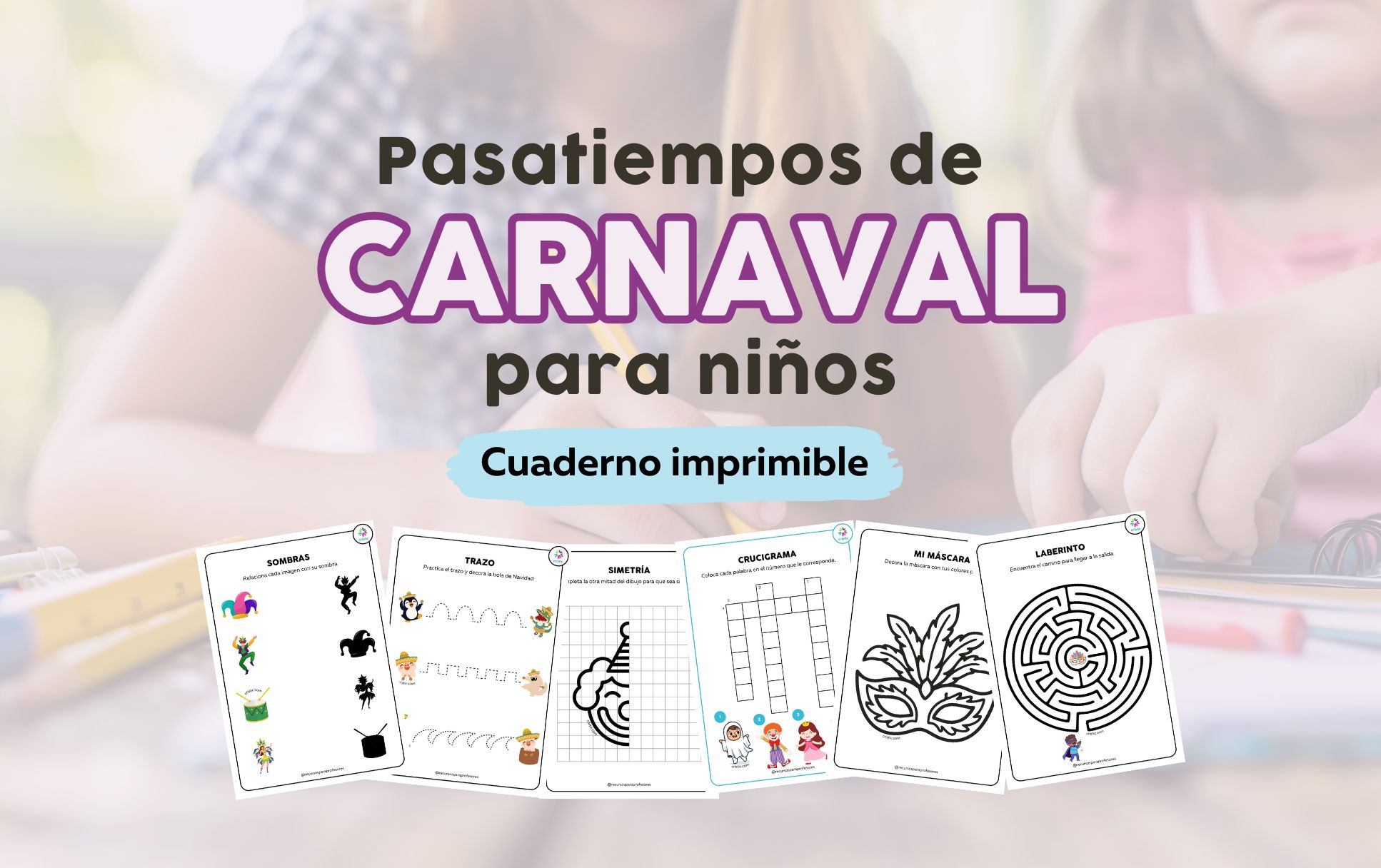 Por eso he preparado un cuaderno gratuito de pasatiempos de Carnaval para Infantil y Primaria, con propuestas variadas que combinan juego, lógica, lenguaje y creatividad.